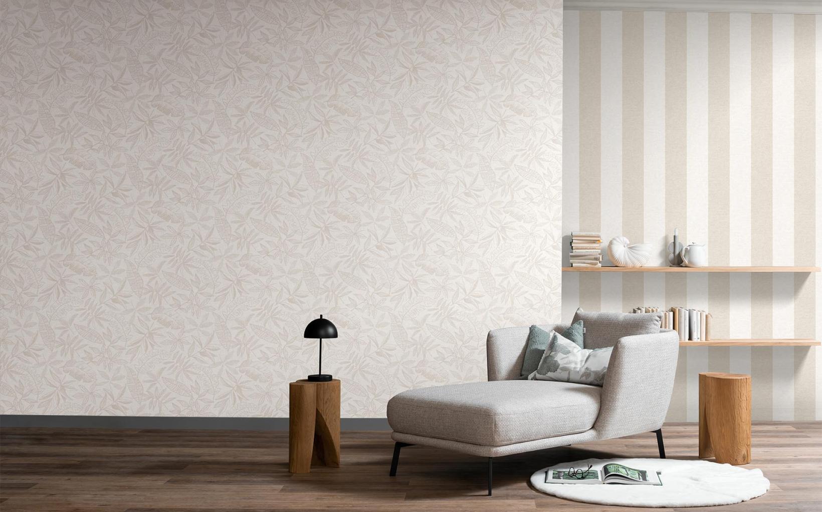 Der Landhaus-Stil hat viele Facetten. Mal zeigt er seine romantische Seite, mal setzt er auf moderne Zurückhaltung und natürlichen Charme. So wie hier! LEAFAGE! Herrlich unaufdringlich haben sich die Zweige und Blätter auf dem Vlies arrangiert. Abstrakt und von Hand gezeichnet entsteht so ein lockeres Naturschauspiel, das viel Raum für die Gestaltung lässt.